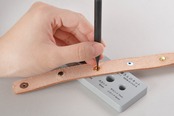 革や生地をなるべく傷めずに、カシメやホック等の金具をはずすのに便利な道具です。