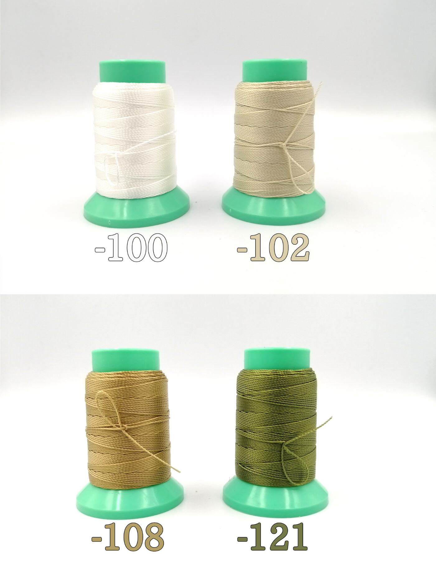 インボンド加工により、糸の毛羽立ちがなく 表面が滑らかで、撚り戻りをしません。ロウを塗らずに使える為、糸本来の輝きを損なわず、きれいな仕上がりになります。ロウを使わない為、手や作品を汚す心配もありません。