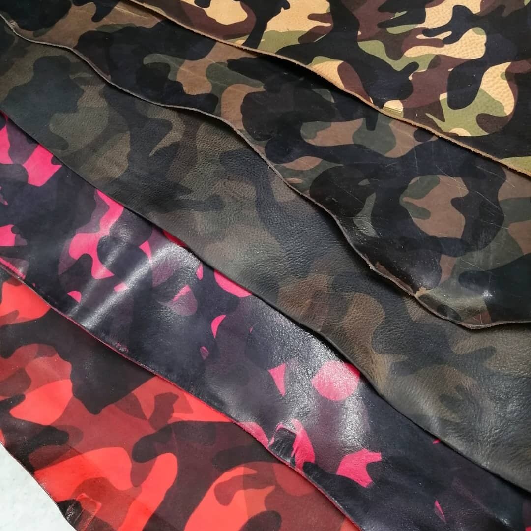 ヌメ革に3トーンの半透過重ねで、迷彩柄が表現されたタンニン鞣し革。ほどよく油脂分を含み、柔らかくもコシがあります。裁ち端(コバ)、床面もきれいに磨けます。