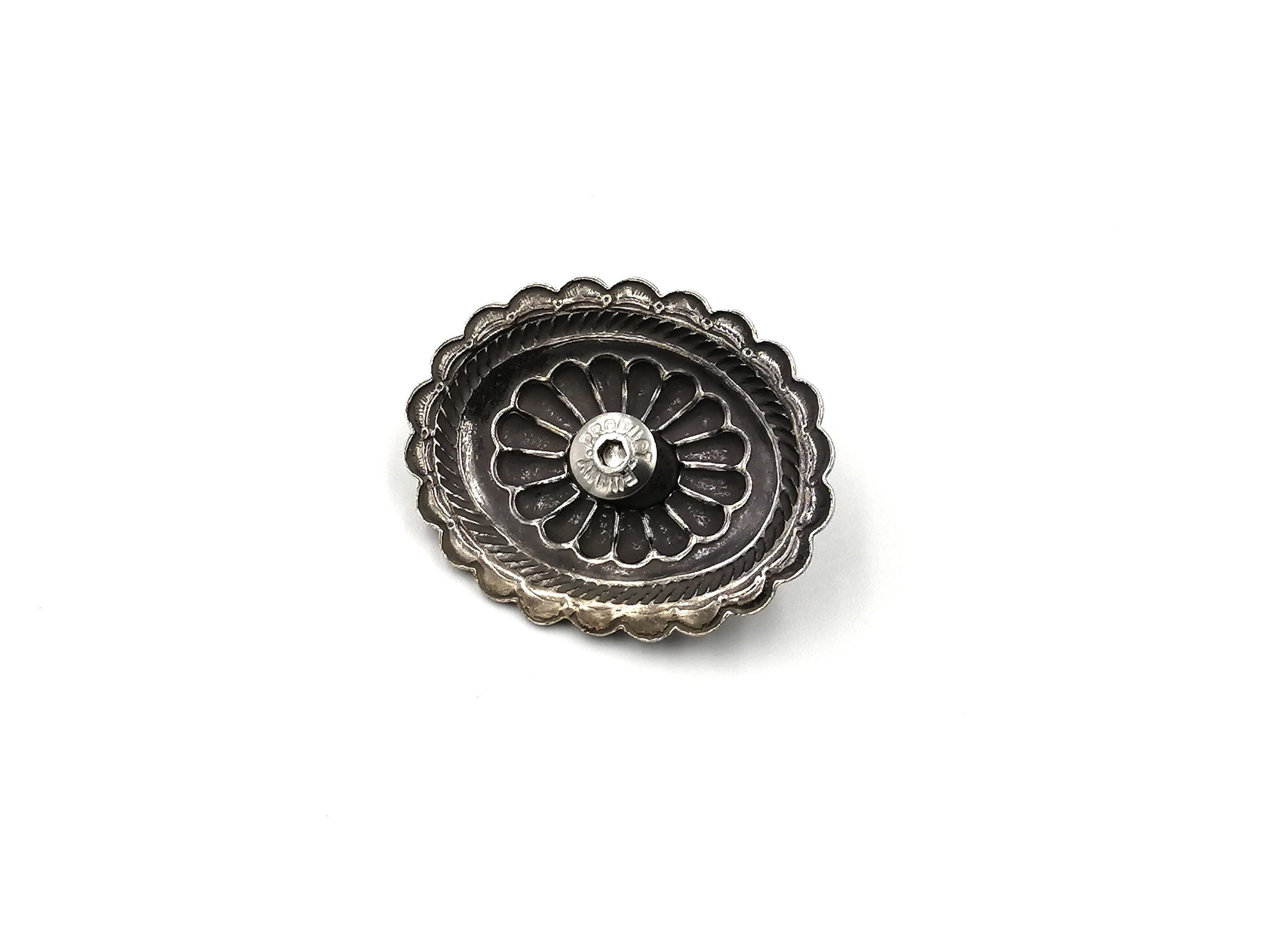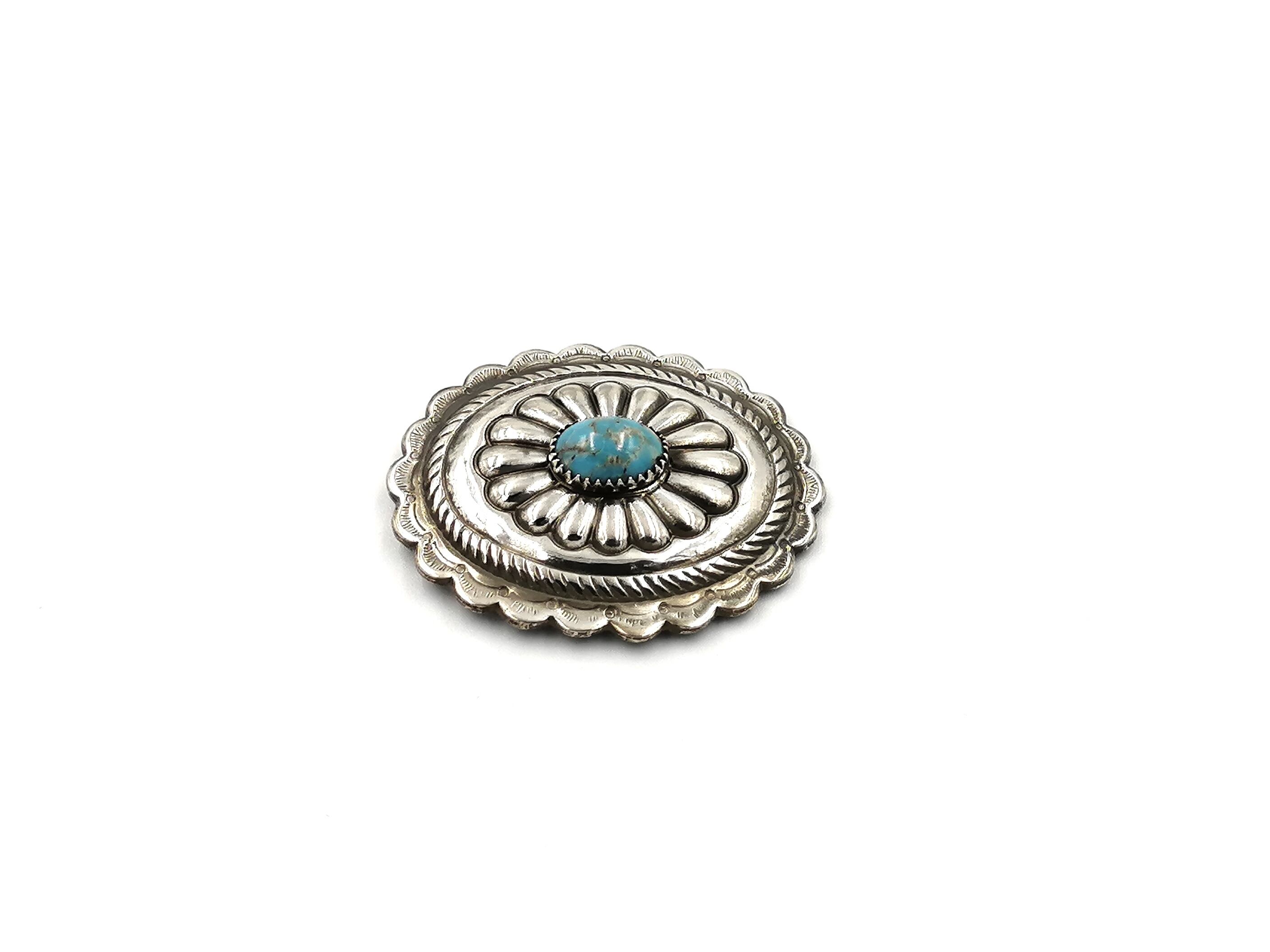 センターには、ターコイズ風のガラスが付きコンチョのワンポイントになっています。