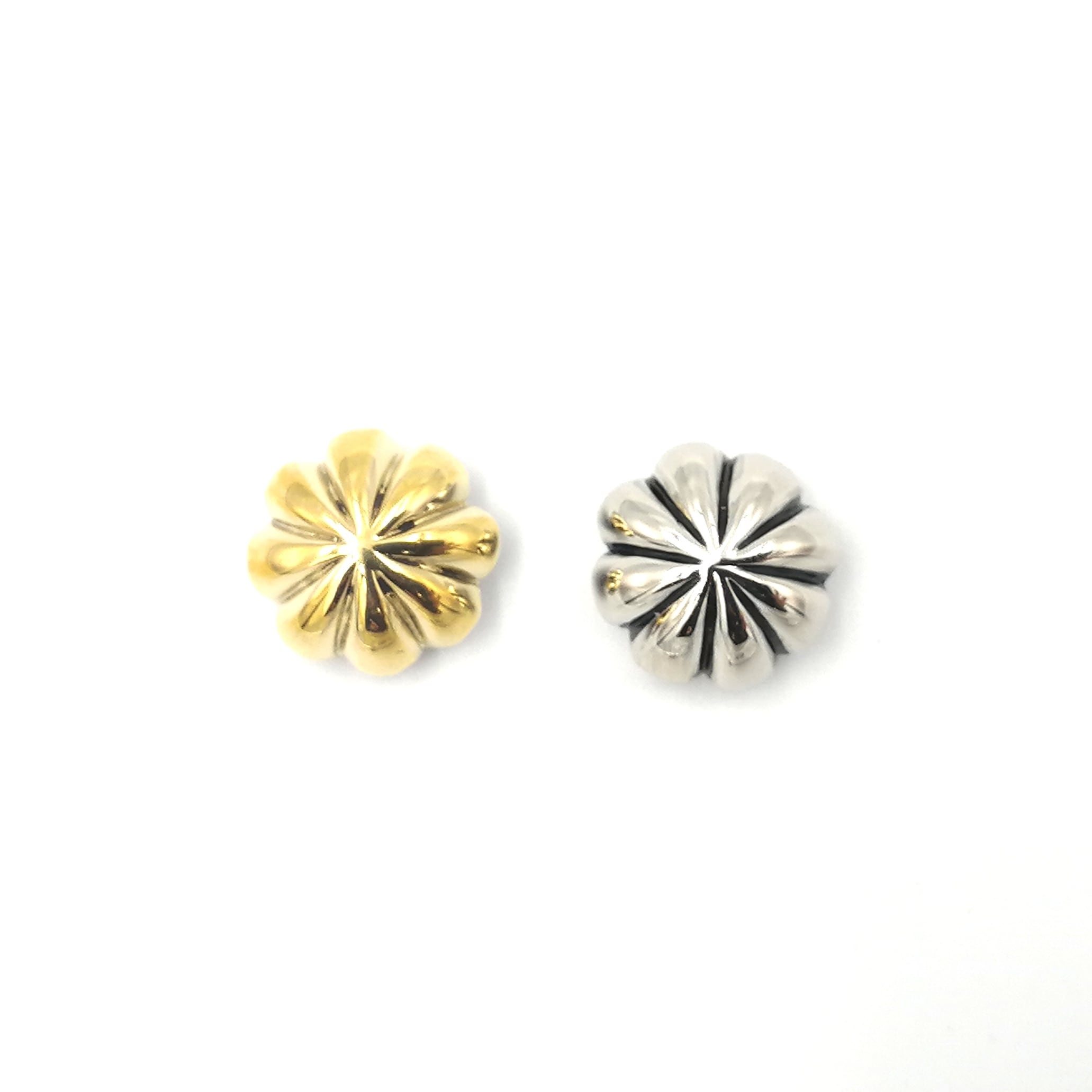 細かいデザインが施されたかわいらしいコンチョ。3サイズあり、こちらのページでは、小さい16mmをご購入いただけます。カラーは真鍮(Br)とニッケル(N)の2色になります。