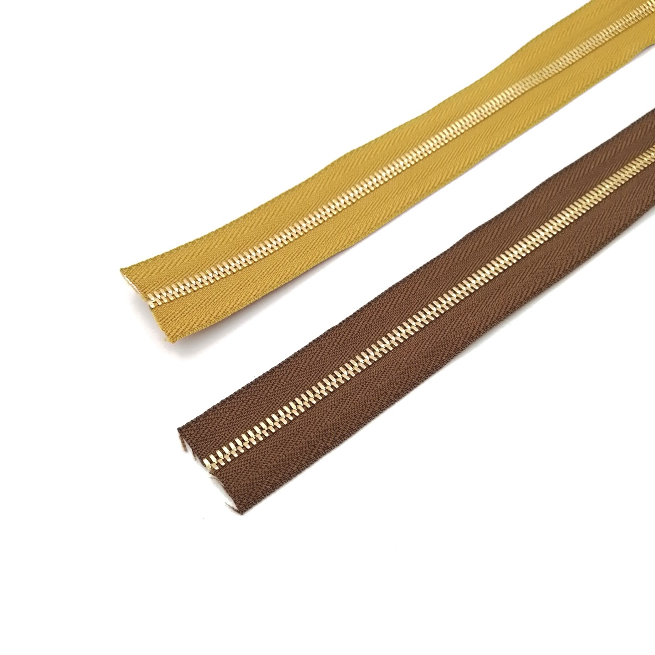 YKKが製造する高級ファスナー。エレメント(ムシ)を磨き、美しく滑らかな開閉を実現しました。重厚感のある両面タイプで、スライダーを向かい合わせに2つ入れることで両開きにも対応できます。