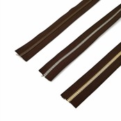 YKKが製造する高級ファスナー。エレメント(ムシ)を磨き、美しく滑らかな開閉を実現しました。重厚感のある両面タイプで、スライダーを向かい合わせに2つ入れることで両開きにも対応できます。