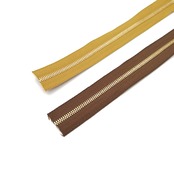 YKKが製造する高級ファスナー。エレメント(ムシ)を磨き、美しく滑らかな開閉を実現しました。重厚感のある両面タイプで、スライダーを向かい合わせに2つ入れることで両開きにも対応できます。