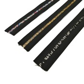 YKKが製造する高級ファスナー。エレメント(ムシ)に様々な色を並べ、他とは違うかわいらしさを実現しました。重厚感のある両面タイプで、スライダーを向かい合わせに2つ入れることで両開きにも対応できます。