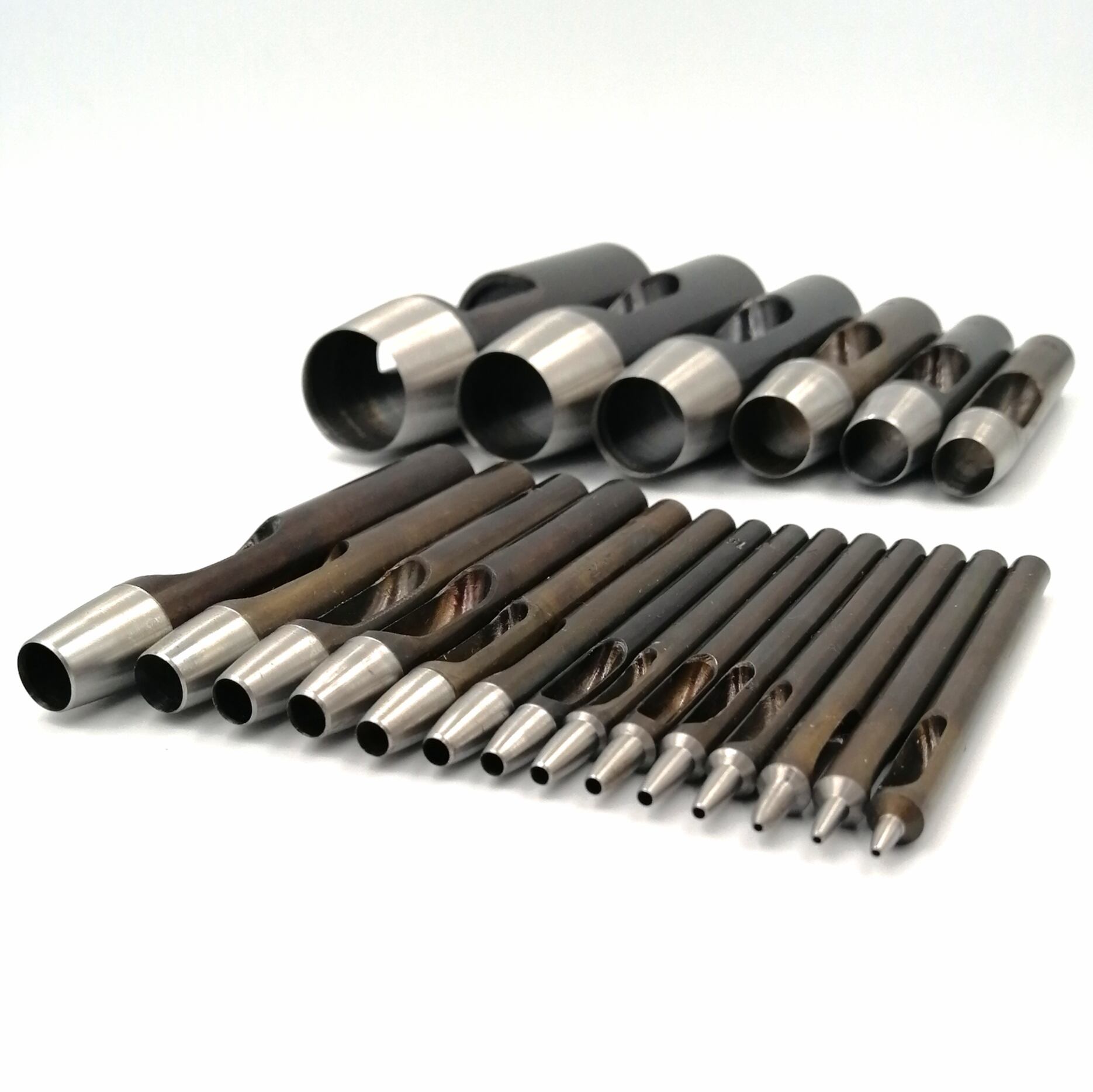 特に8号~18号はホック類、カシメ類での用途が多く、レザークラフトをするなら揃えておきたいサイズです。穴開けをした素材からの抜けを良くするためテーパーが付いており、刃先の先端が実際の寸法になります。※厚い素材へ使用する際は、表面の穴が大きくなります。