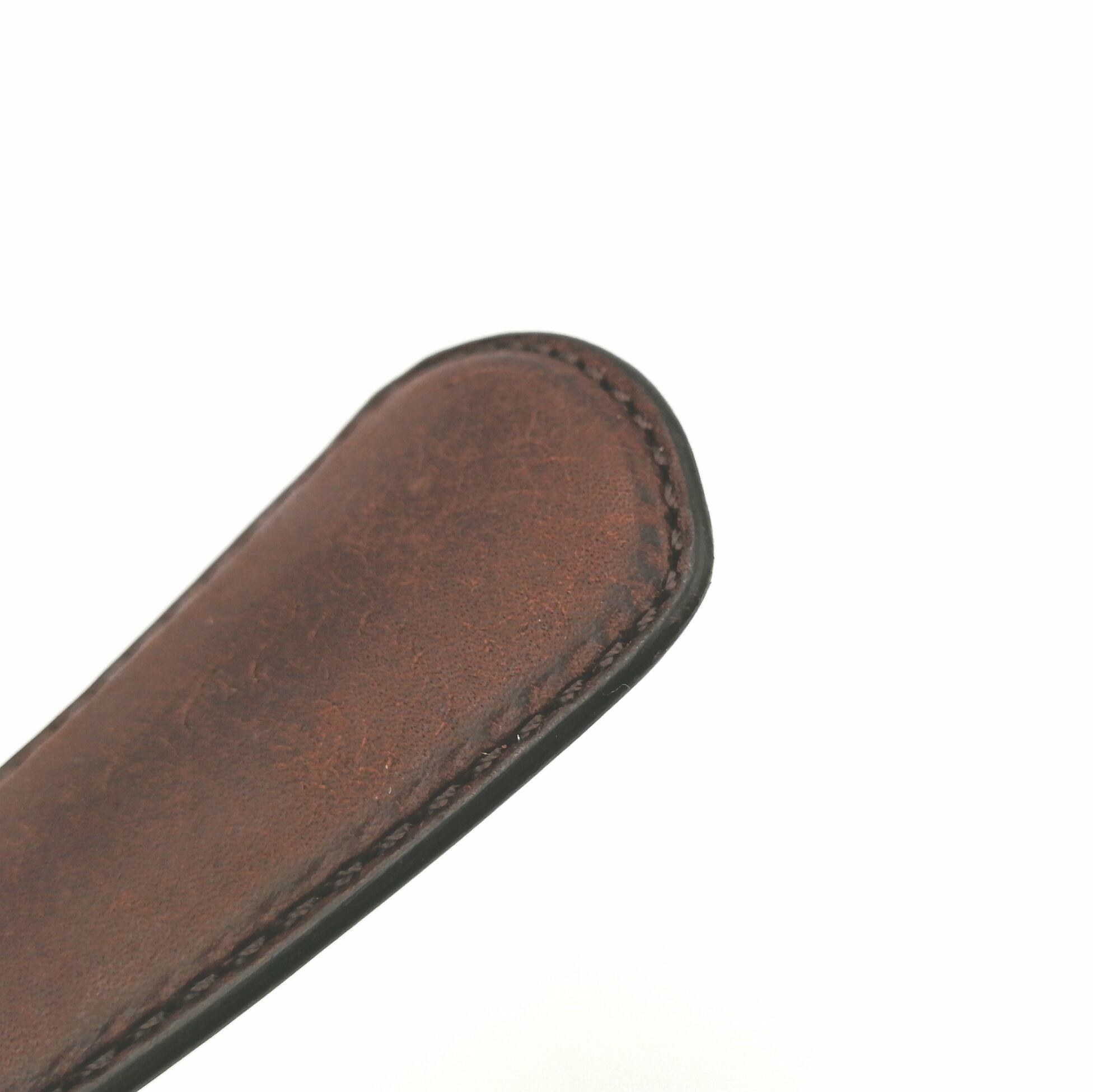 キーホルダの金具が4個付いた、スマートに仕上がるクツベラ用芯金。製作時間もかからず、プレゼントにも良さそうです。芯金とキー付き金具はネジ止めなので安心して使えます。1mmくらいのタンニン鞣し革を使うと、仕上がりも良く、キー付き金具への収まりもいいです。